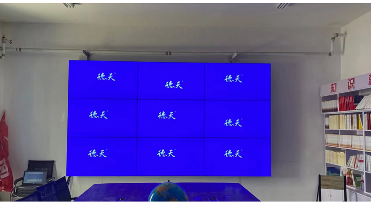 The conference room of Xinjiang Tumushuke 51st Regiment purchased a total of 18 DeTian 55 inch LCD splicing screens, which were installed in a 3 * 3 manner. They were recently installed, debugged, and delivered for use. Thank you very much for the customer's trust and support!