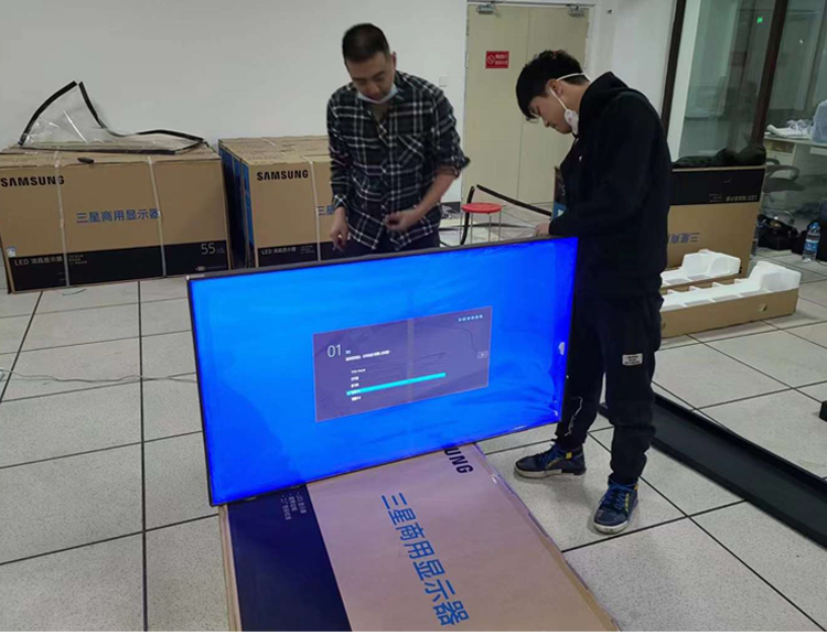 A certain construction corps in Urumqi, Xinjiang has purchased our company's Samsung original splicing screen, with a size of 55 inches and a splicing seam of 1.7mm, totaling 12 pieces. It is installed using a 3 * 4 vertical cabinet installation method and was recently installed, debugged, and delivered for use. We are very grateful to the leaders of a certain construction corps in Urumqi, Xinjiang for their recognition of our products and services.