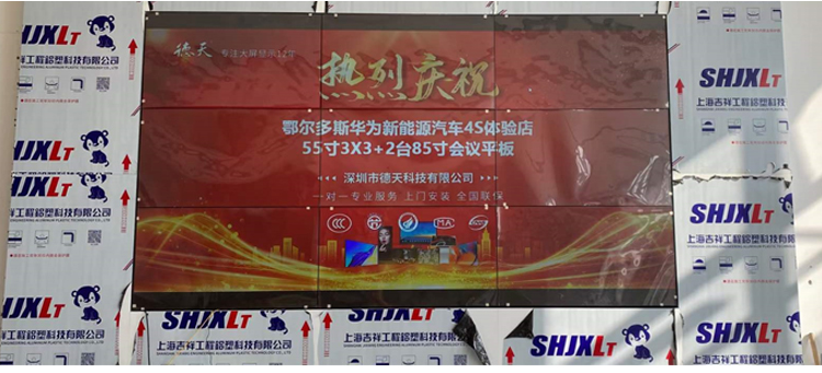 鄂爾多斯華為新能源4S店在裝修前就已經預定了我司9塊55寸液晶拼接屏和2臺86寸會議一體機,等裝修差不多竣工時,客戶告知我們可以發貨了,于近日已經安裝調試交付使用。非常感謝客戶信任與支持,祝鄂爾多斯華為新能源4S店生意興隆,辛苦了,技術安裝部門的小伙伴。